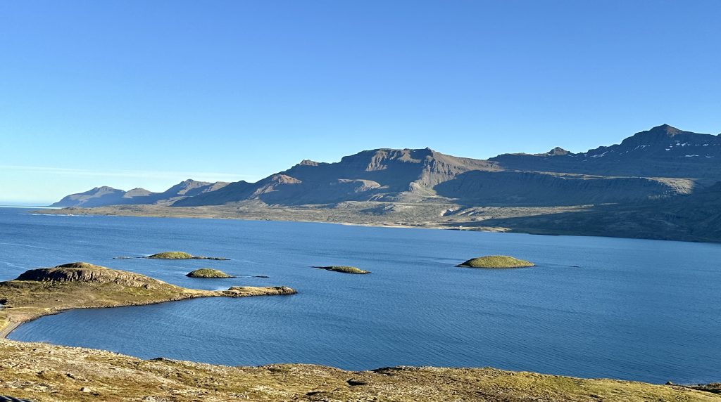 On our short 3.5 hour drive today we ventured through incredibly diverse terrain – moving from lakebeds to lunar rockery to small forests to steep mountains to fjords. After another hearty breakfast with Fálki, we started our drive east through moon/mars-like landscape. The scenery appeared right out of the movie The Martian. Lining the highway was short rock stacks, an old Icelandic tradition used long before the highway for hundreds of years to “guide the way” through these barren lands.