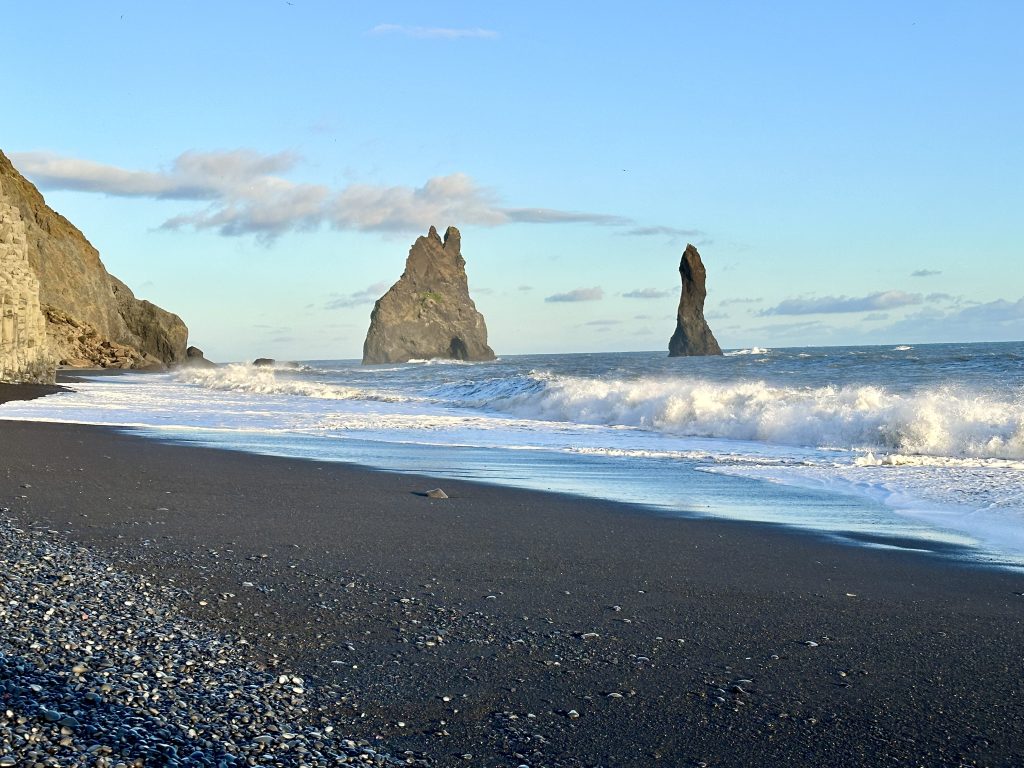 As the day concluded we approached the town of Vik and our farm based cottage. Before calling it a night we checked out another beach (Reynisfjara) and enjoyed an Icelandic Pub. Reynisfjara has been made famous both for its puffin colony and its use as a filming location in the series Game of Thrones. Unfortunately the puffins from this colony have already made their way out to sea (we hope to see some from another colony tomorrow) but even without them the beach was worth the visit due to the large waves and offshore rock formations. At dinner we were greeted to a fall staple on the many TVs (NFL football). It appeared we were the only table interested in what was on TV but we appreciated the small connection to Fall Sundays at home.
