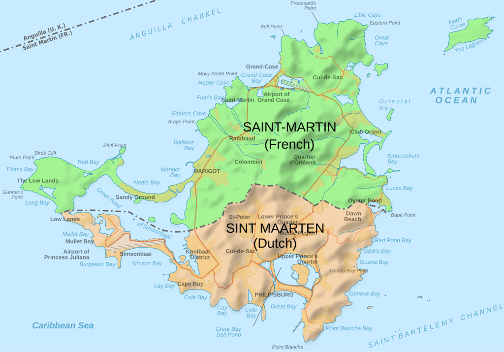 Today we explored the neighboring island to the south of Anguilla – Saint Martin. Saint Martin is a small island about the same size as Anguilla and is also a European territorial possession. Unlike Anguilla, the island is divided between two nations, France (Saint Martin) and the Netherlands (Sint Maarten). Compared with Anguilla, the population of the entire island is about 5 times larger and the geography is far more lush and hilly. The French side is bigger in terms of area (about 60% of the island) but the Dutch side is more populated (about 56% of the inhabitants). Although you need to pass through immigration and customs when entering the island, travelers and residents can freely move between the two sides once on the island, with nothing more than small landmarks differentiating the two sides.