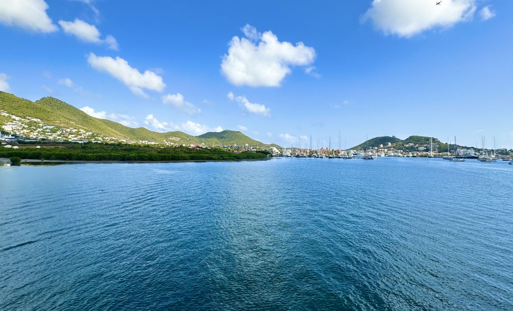 We travelled to Saint Martin via ferry, which is a far cry from the busyness of our ferry system back home. Immigration and customs is a breeze, but we were happy to add stamps to our passports! After taking the short 18 minute ferry from Anguilla, we rented a car from a French resident for the day. We started and ended our day touring the French side, we began by traveling west, then south, east, north, and eventually west in a large loop around the island. As we learned, although English is widely used on the Dutch side, it is much less frequently spoken on the French side! It was a fun and unexpected challenge for us to navigate a language neither of us knew. We had lunch (complete with French bread, of course) in a quaint town near Orient Bay.