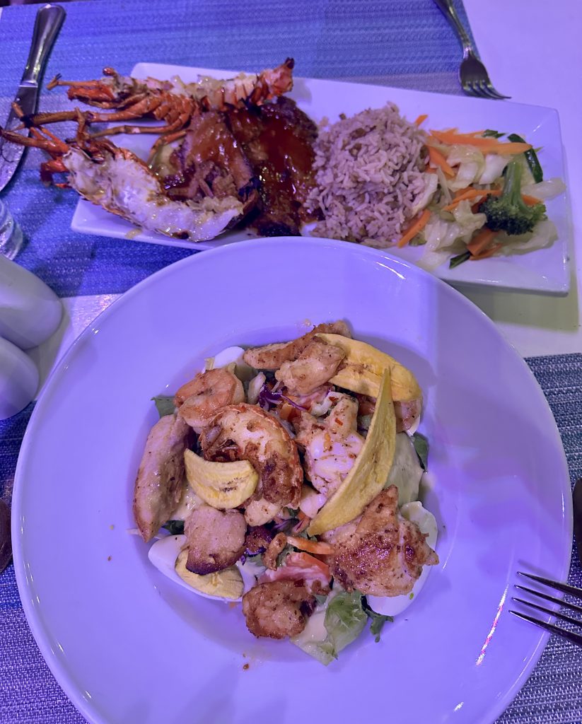 For dinner we ventured inland again and enjoyed a wonderful dinner at a local-favorite, filled with freshly caught local seafood, brisket, papaya sorbet and a brownie. Tomorrow is our last full day on the island and we intend to take full advantage of enjoying our slice of Mead’s Bay.