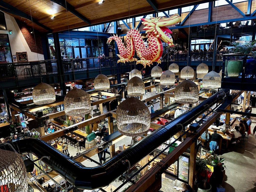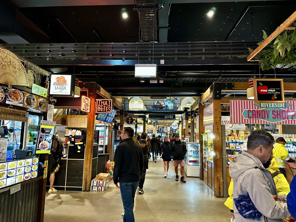 We took a reprieve in the Riverside Market, a wonderful food market, akin to an Eataly or Pike Place Market except it included more diverse food categories (lamb and venison salami, Himalayan momos, Shanghai noodles, Spanish tapas, Korean bulgogi, French bistros, Italian sandwich shops, fish markets, Japanese ramen, and more). The Market largely catered to the working lunch crowd. After enjoying the wonderful smells of the Market, we ventured into the elements to enjoy the Christchurch Botanical Gardens, including a lovely rose garden.