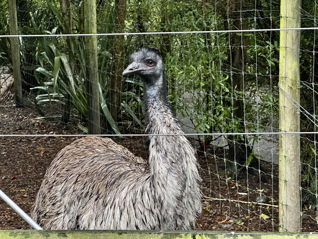 After we had had enough of the rain and wind, we drove to the nearby Willowbank Wildlife Reserve to see some of the most elusive and endangered New Zealand and Australian animals and birds. As animal-welfare enthusiasts, we were pleased that the Reserve does a great job of ensuring that the animals have large habitats and all animals have been rescued, are part of conservation efforts, and/or were otherwise unable to live in the wild for a variety of reasons. We were finally able to view the famous Kiwi bird in their nocturnal house (Kiwis are nocturnal, so their habitat is very dimly lit and necessitated quiet). The Kiwi bird is endemic to New Zealand and is a very unique, elusive, and shy bird – they have no tail or wings. The Kiwi is the only bird in the World with nostrils at the tip of their bills, resulting in them technically having the shortest beaks of any bird (scientists measure a bird’s beak from the nostril to the tip of the bird’s beak). New Zealanders are very proud of their Kiwi, choosing it as their national symbol and referring to themselves ‘Kiwis’. No photos were allowed in the Nocturnal House, so we have included a stock picture of these unique birds (the last picture in this sequence).